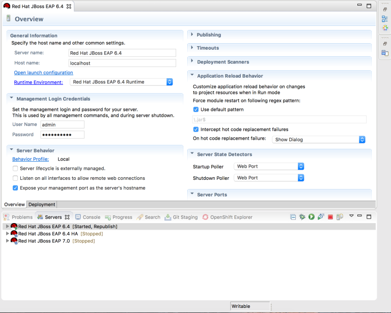 - Navigate to the Servers tab in JBoss Dev Studio and double click on your server
