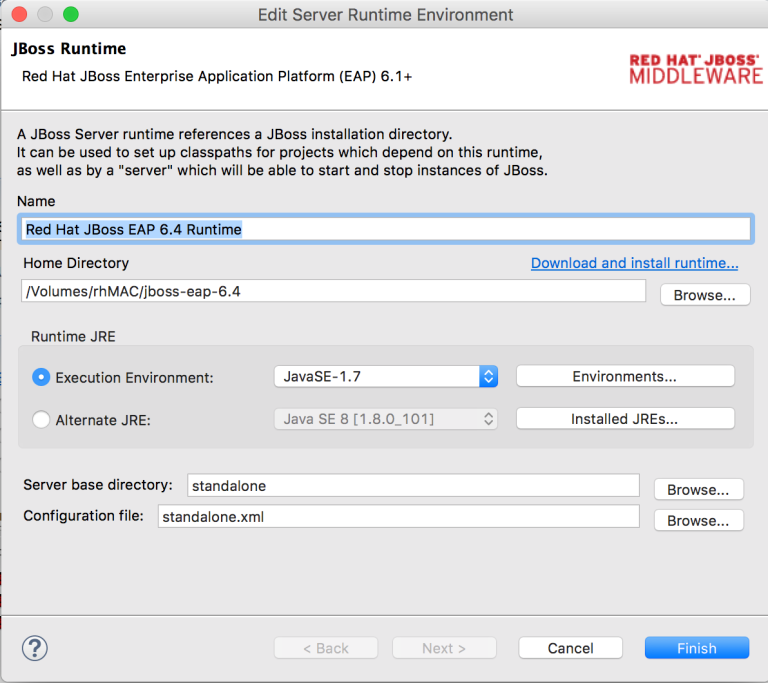 - Click Runtime Environment. Your server directory will be under Home Directory. We call this $JBOSS_HOME